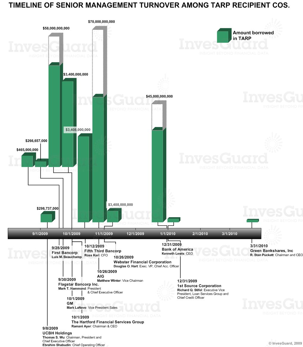 Besides pay regulation, these TARP recipients have had to contend with a flight of senior management executives. The past one month alone has seen at least 11 instances of senior management exits at TARP companies.